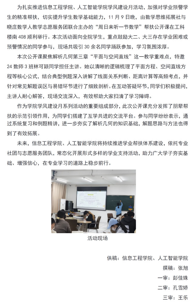 聚力学风建设,破解几何难题一信工院“周日数学”朋辈讲堂开讲