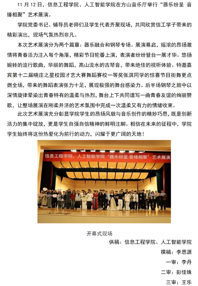 信息工程学院、人工智能学院在方山音乐厅举行“器乐纷呈 音缘相聚”艺术展演