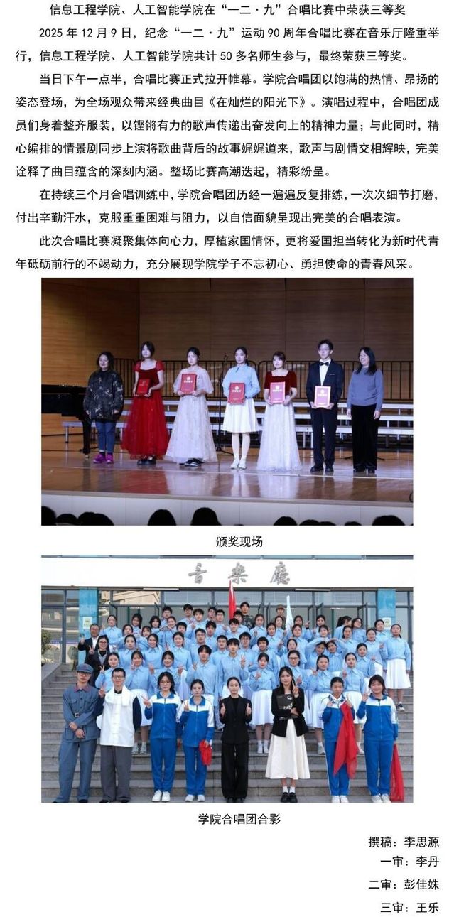 信息工程学院、人工智能学院在“一二·九”合唱比赛中荣获三等奖