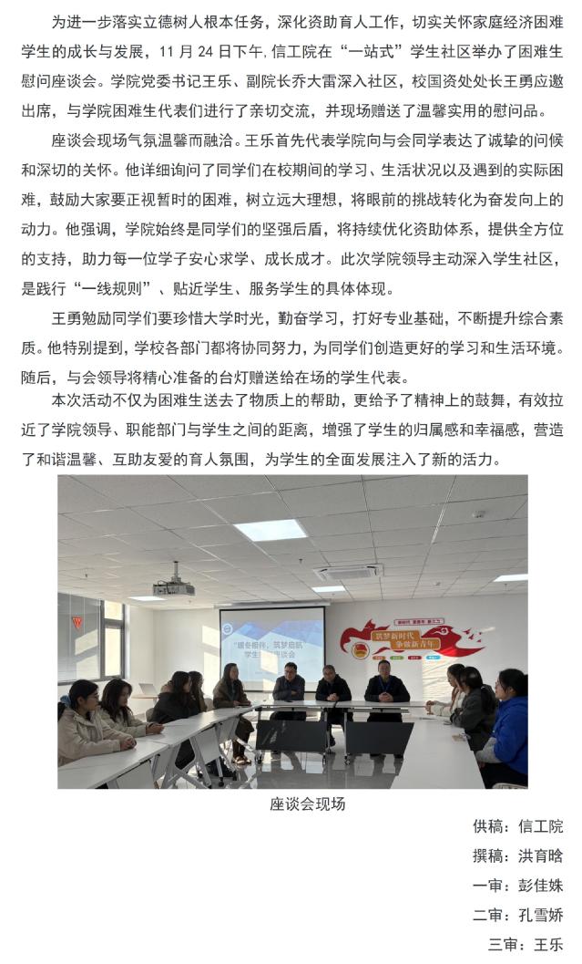 信工院在“一站式”学生社区举办困难生慰问座谈会