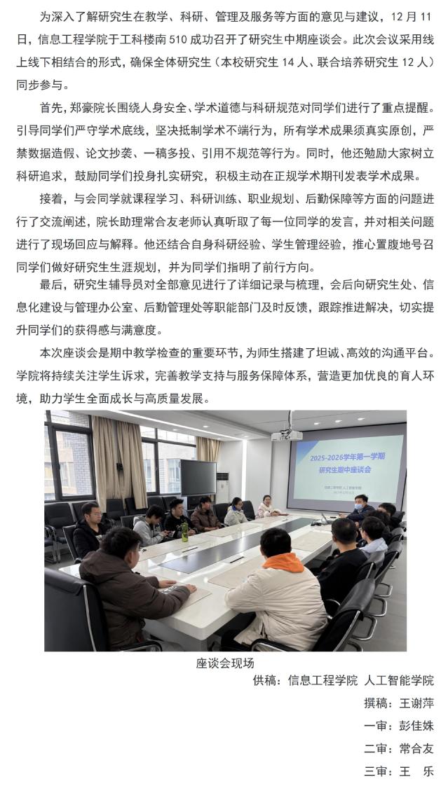 信工院举办2025-2026学年第一学期研究生中期座谈会
