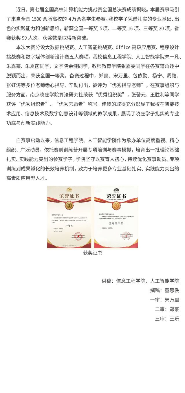 我院学子在第七届全国高校计算机能力挑战赛中荣获佳绩