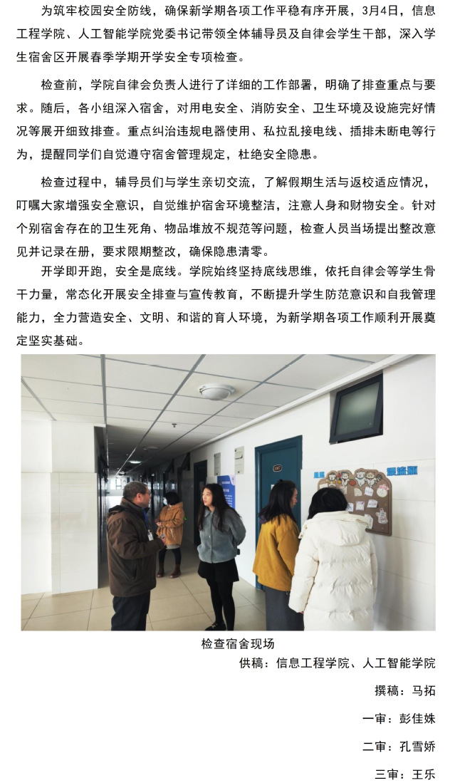 信息工程学院、人工智能学院开展新学期宿舍安全专项检查