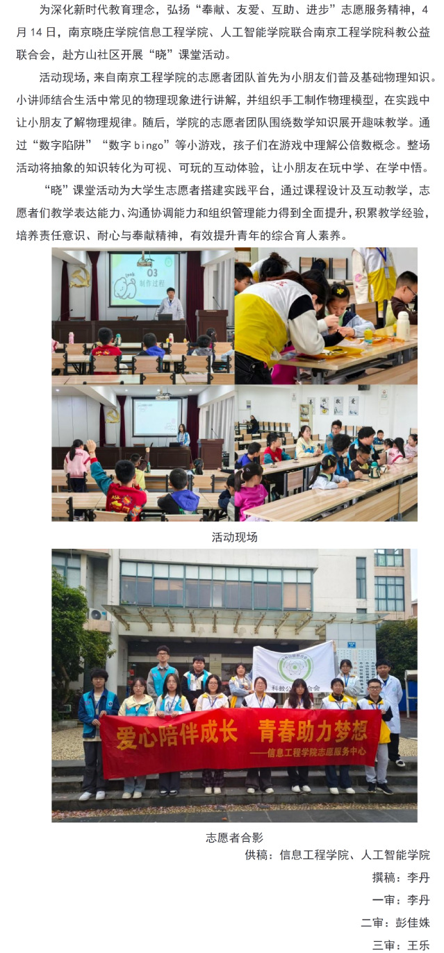 南京晓庄学院信息工程学院、人工智能学院联合南京工程学院科教公益联合会开展“晓”课堂活动