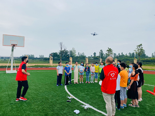 信工院学子为小学生演示无人机操作