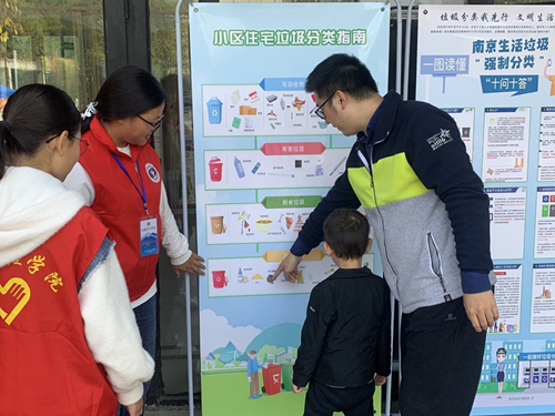 2020年11月7日,南京晓庄学院信息工程学院团学联志愿服务中心走进南京市将军大道129号翠屏湾党群工作站,为20户亲子家庭开展垃圾分类相关宣传活动。
