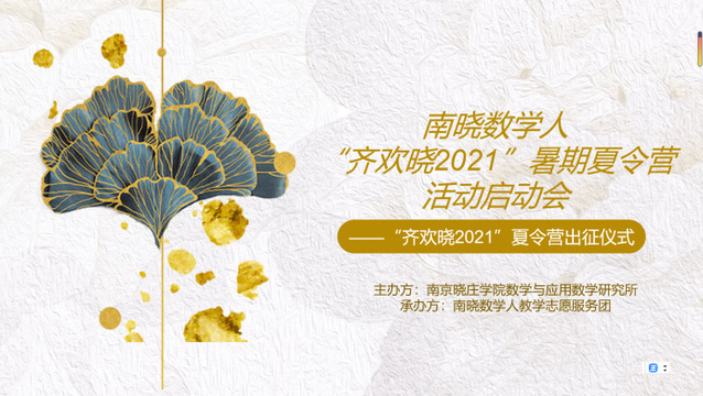 为彰显教育创新优势,响应国家“三下乡”号召,发挥青年志愿者力量, 2021年8月1日上午,由我院数学与应用数学研究所主办,南晓数学人教学志愿服务团承办的“齐欢晓2021”暑期夏令营出征仪式于线上进行。我院及南京市齐武路小学教师代表及志愿者团队全体出席出征仪式。