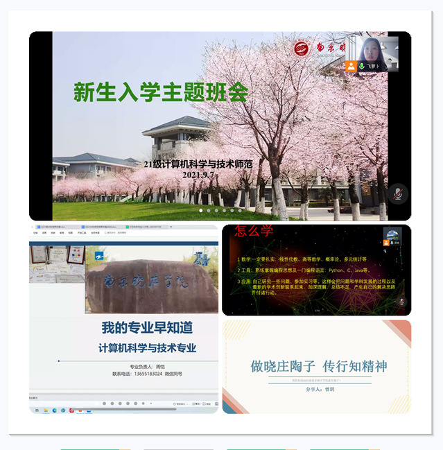 为了更好地实现学生个性化发展,学院精心配备新生班主任,召开班主任工作交流会,邀请学院优秀班主任代表作经验分享,搭建相互交流和学习的平台。班主任们不仅是学术上的指导,同时也是生活中的有心人。通过个人信息摸排,建立“纸质+网络”两级档案,精准了解学生的学业和健康情况。通过提交学业规划书,帮助学生加深对自我的认识,进一步强化学生的规划意识。在云端班会上,班主任们从思想角色转变、学业管理、疫情防控等方面,加强新生对校园生活的适应性教育。