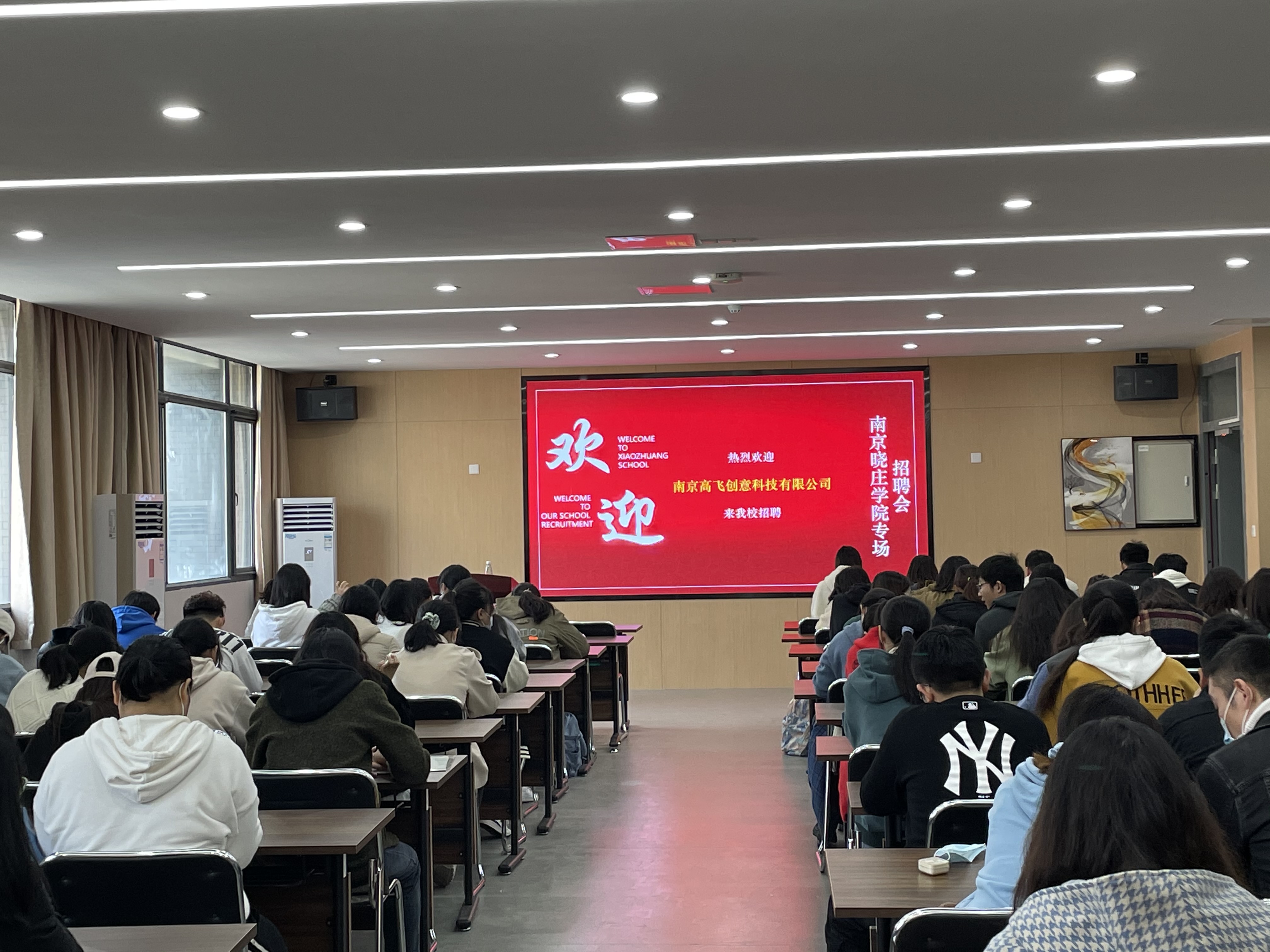 南京高飞创意科技有限公司是在莫愁生态环境保护协会专业人才基础上创建的新公司。宣讲会气氛热烈、秩序井然,学生积极与企业招聘人员进行洽谈,深入了解企业的需求和职业能力。企业诚意满满,面向学生提供全职、兼职、实习等多种岗位。现场有5位毕业生达成初步签约意向。