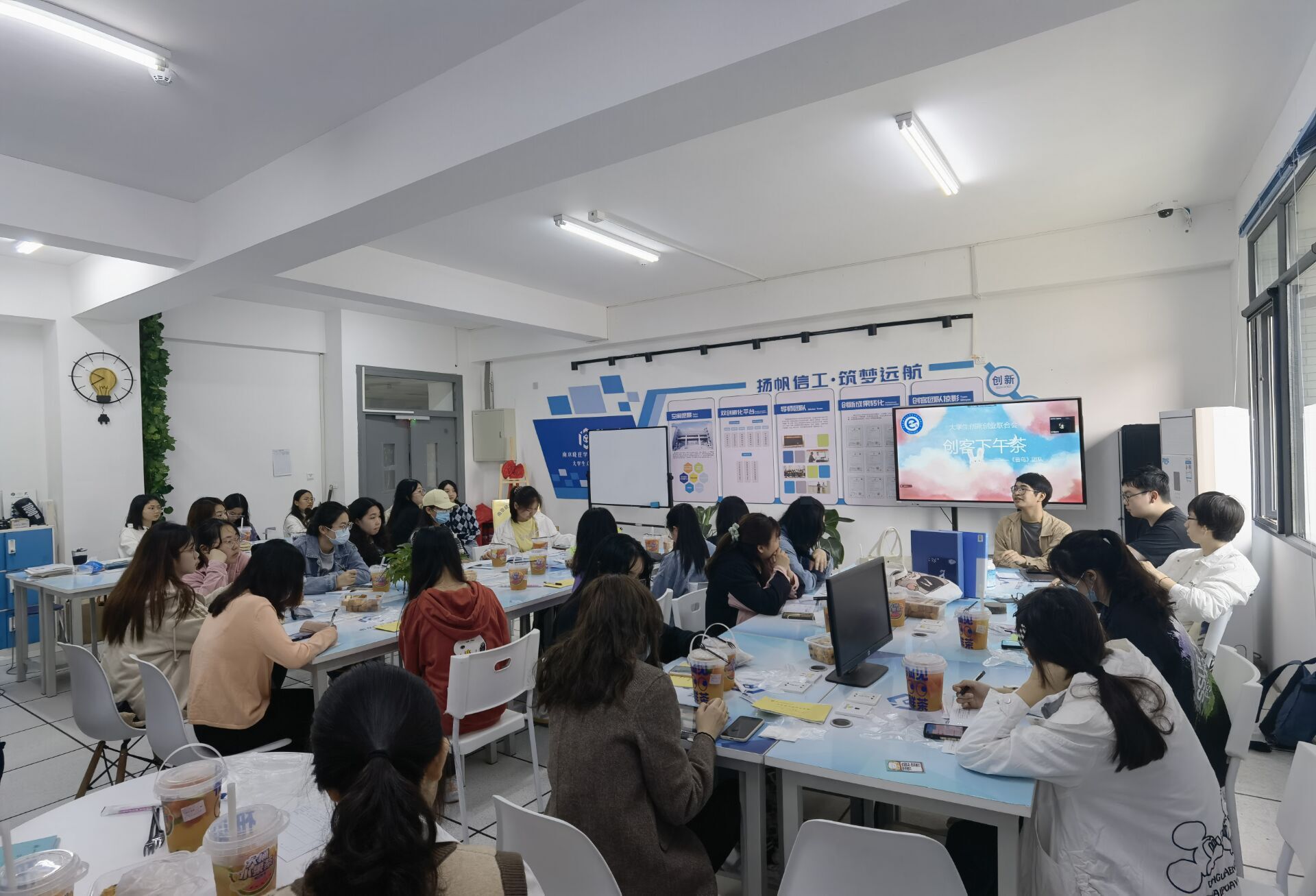 “创客下午茶”系列活动旨在搭建一个轻松愉悦的、创新创业项目互动交流平台,激发头脑风暴,从而迸发更多的思维火花,促进资源整合,实现项目团队合作发展,做大做强学院“双创”品牌。