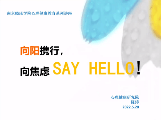 为帮助大三学生积极面对学业、就业,增强求职信心,5月20日下午,信息工程学院邀请校心理健康教育教研室主任陈涛老师作“向阳前携行,向焦虑Say Hello” 就业心理调适讲座,2019级全体学生在线聆听。