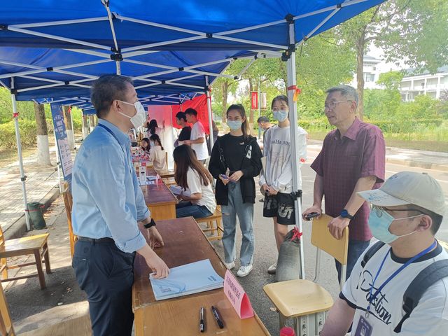 在招聘会现场,2022届毕业生勇于交流,积极投递简历。招聘人员详细解答,现场氛围融洽。同时,校关工委老同志亲临现场交流指导工作,仔细询问了参会企业的经营状况和招聘岗位,对求职学生进行耐心指导。现场招聘会结束后,高顿银行等企业组织部分学生现场宣讲和面试。
