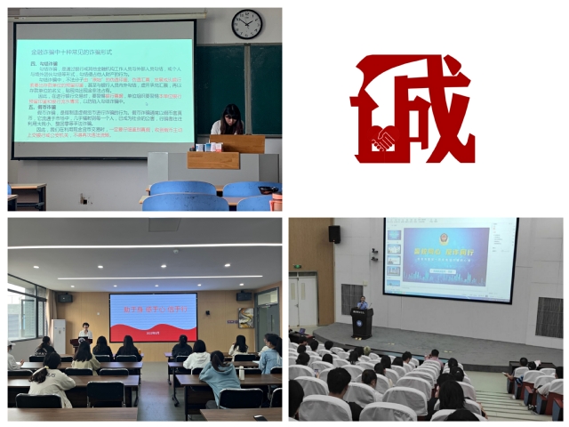 主题讲座促进自觉的诚信养成。为促使诚信教育、预防诈骗教育、远离不良贷套路贷警示教育可以更好融入学生日常管理,转化为大学生的自觉素养与行为,学院邀请校内外老师做主题讲座。校学工处学生管理科科长井立文老师带来“助于身、感于心、信于行”讲座,通过对各类奖、助、勤、贷等政策介绍,使得受助同学深刻了解国家、学校对自己的帮助,深化感恩教育。高新区派出所社区中队长李琳警官作“警校同心,反诈同行”主题讲座,通过鲜活案例提醒同学谨防电信诈骗。