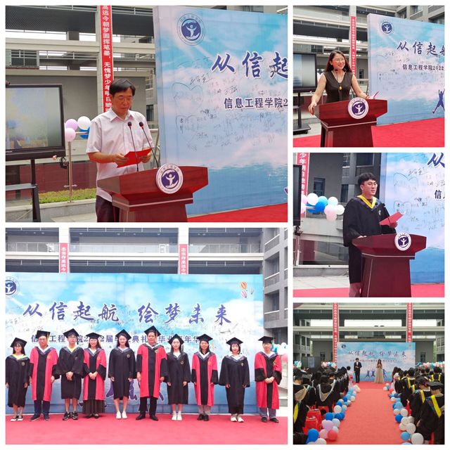 6月20日上午,信息工程学院隆重举行“从信起航 汇梦未来”2022届毕业典礼暨毕业嘉年华活动。学院党政领导、毕业班班主任、学工办、教务办全体老师到场,与毕业生共同度过这激动而难忘的时刻。