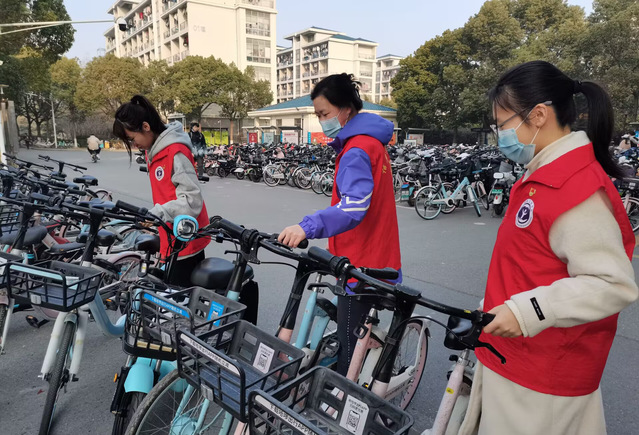 3月5日清晨,学生党员整装待发,开展“文明行”活动,助力文明校园的建设。党员志愿们对校园内乱停放的共享单车进行规范停放,清理单车内残留垃圾。此外,志愿者们随机开展文明使用单车宣讲活动,倡导大家爱惜公物、文明停车。