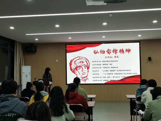 当晚,学院再次组织党团青年观看影片《雷锋是怎样炼成的》,该视频讲述了雷锋同志的生平,让学生对无私奉献的大爱精神有了更深的认识。观影结束,20小学教育(数学)6班谭笑、20计算机科学与技术(师范)李旖祺结合自身的志愿服务经历,向同学们进行了分享。谭笑同学认为志愿服务都应基于“我想为他做点什么”,而不是为了得到什么,并呼吁所有同学“但行好事,莫问前程”。