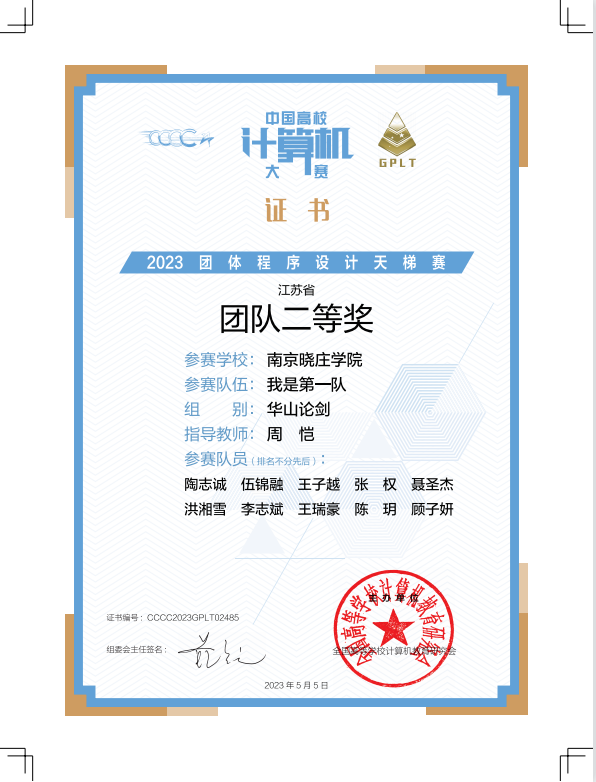 信息工程学院组织三支队伍共30人参赛。经过三小时的激烈角逐,最终“我是第一队”获得全国团队三等奖一项、江苏省高校团队二等奖一项,21计算机科学与技术班张权同学获得个人三等奖一项。