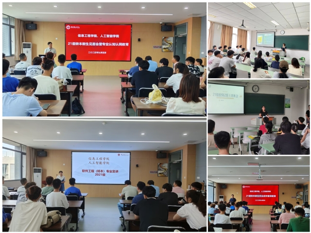 9月5日下午, 2021级转本新生见面会暨专业认知认同教育在工科楼举行。学院党政领导、专业负责人、辅导员及全体转本新生共同参加。在见面会上,院长郑豪对新加入信息工程学院的2021级转本新生表示热烈的欢迎及寄予深切的厚望,强调在座的各位新生应该早日树立人生目标,做好人生规划,勤于修德,脚踏实地,勤勉实践,在学校提供的舞台中成就自我,做一个有本领、敢担当、能吃苦、肯奋斗的新时代好青年!软件工程专业负责人肖文洁老师对专业进行介绍。肖老师围绕专业认知、专业前景、专业人才培养目标三个方面进行介绍。同时,肖老师还邀请了几位高年级同学进行专业收获的分享。